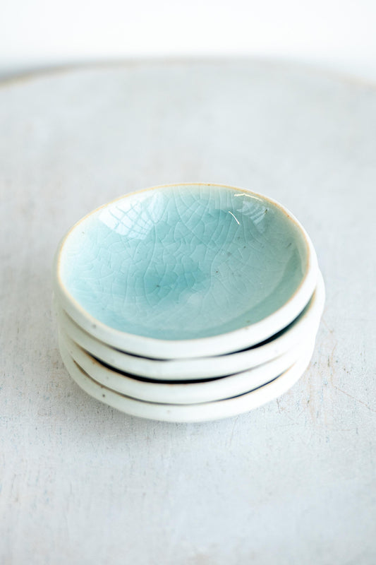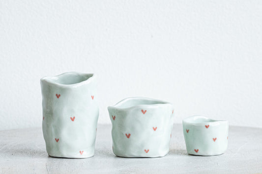 tiny porcelain pinch pot vessels with a hand painted heart design