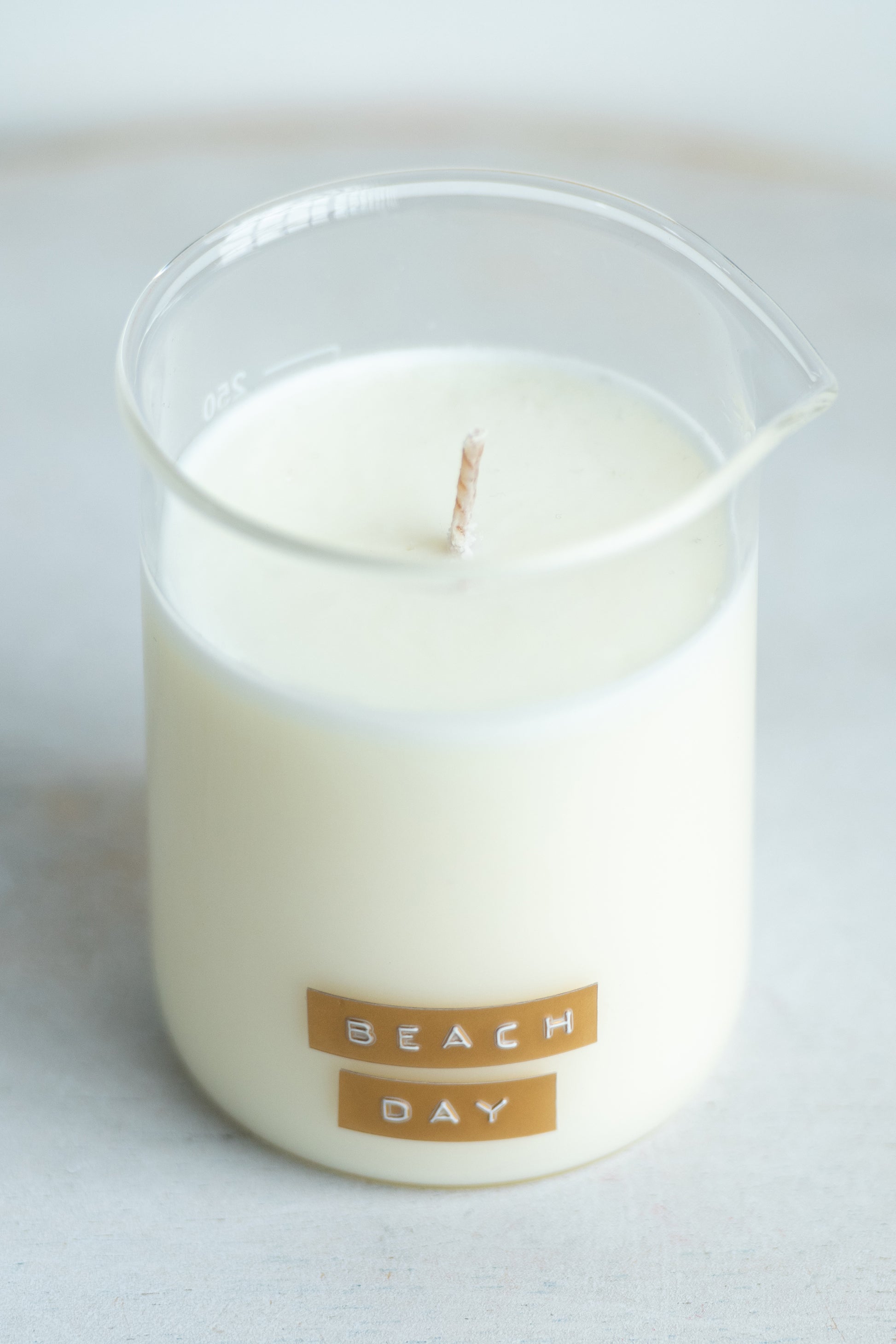 the sweet smell of sun-kissed skin basking on an island beach. slather yourself with sunscreen and prepare for a carefree day with your feet in the sand and the waves gently lapping at the shore. art meets science in this beautiful 8.5 oz beaker candle that will take you right to the water's edge - no matter where you are!